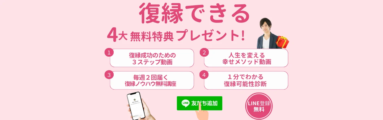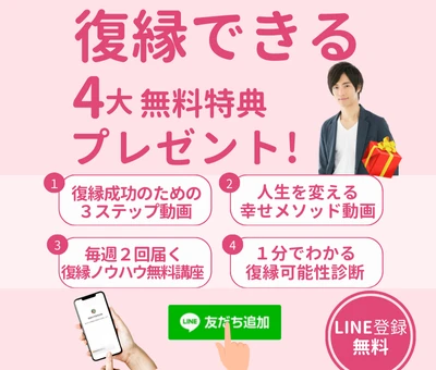 そのように、復縁していただくために、無料の情報を配信しています。「復縁したい!を叶える後悔しない復縁方法」どんな復縁のケースでも、どうしてもやったほうがいいこと、絶対にやってはいけないこと、があります。復縁で失敗する方の多くは、やったほうがいいことをしません。逆に、やってはいけないことを、無意識にやってしまいます。
